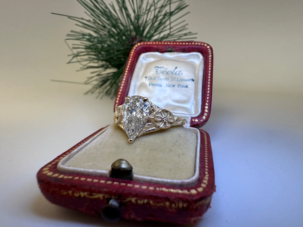 This 14k yellow gold Arwen is available to purchase online or in-store. The center is a Lab-Grown diamond weighing 2.07 ct including an IGI certificate.