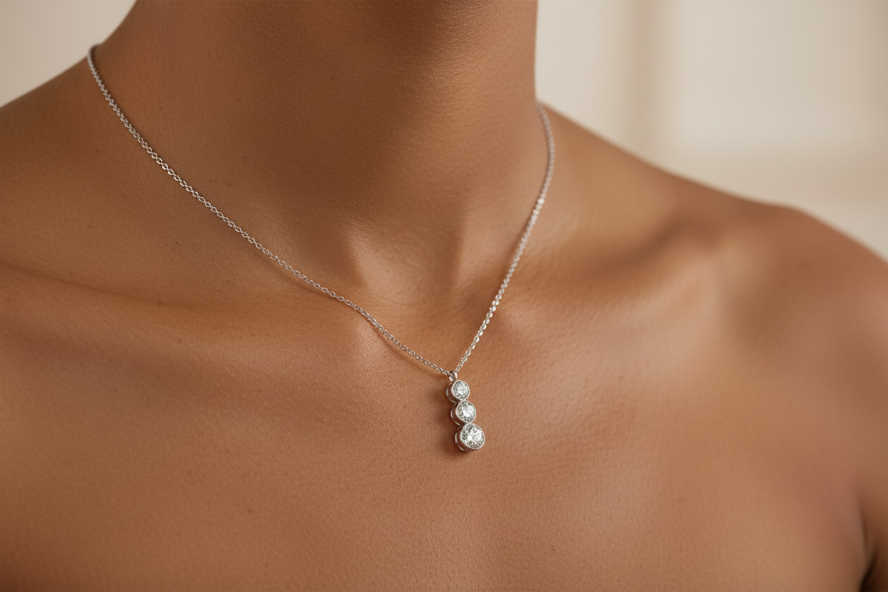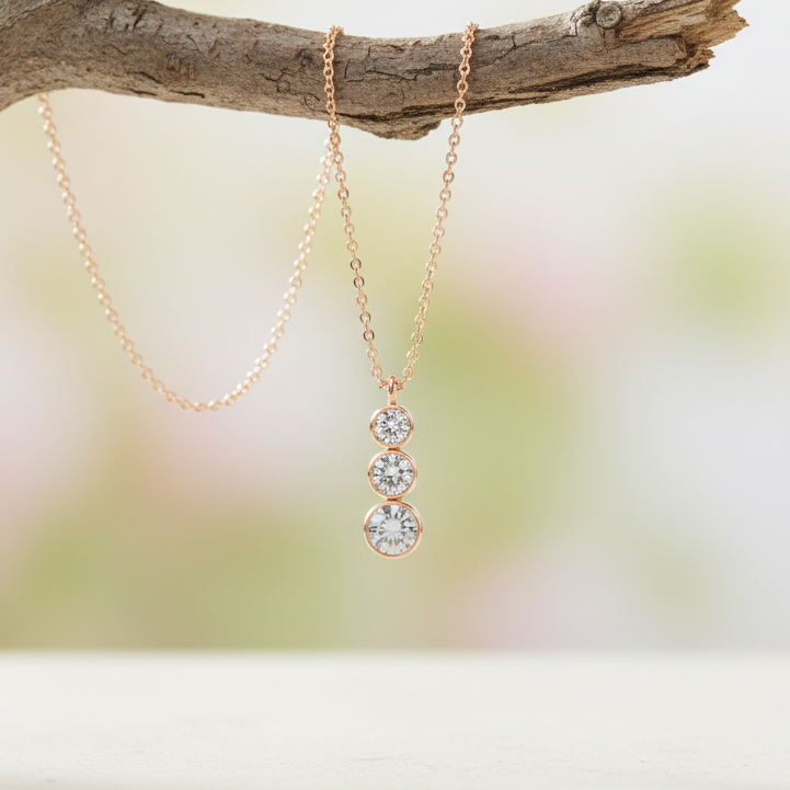 The Bostonian Cascade Pendant is a graceful three diamond necklace featuring three graduating round lab-grown diamonds that flow in perfect harmony from smallest to largest. Designed to symbolize life’s most meaningful journey, this elegant silhouette reflects the essence of past, present, and future, making it a deeply romantic expression of love, growth, and connection. Each diamond is thoughtfully set to enhance brilliance and movement, creating a timeless lab-grown diamond pendant necklace that feels both modern and heirloom-worthy.